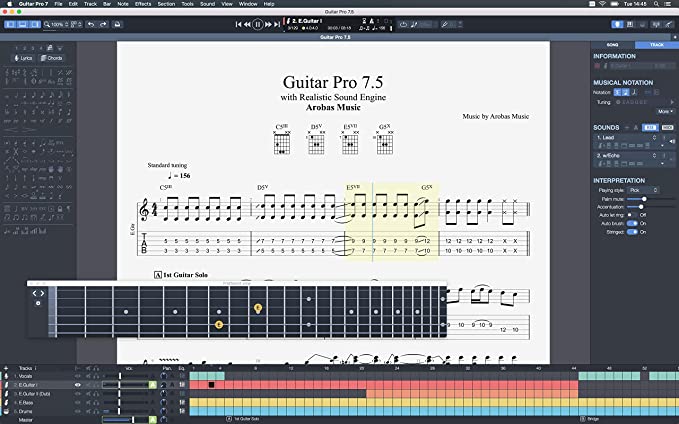 - Notanın yanında Tab, El parmak notaları gibi detaylara yer verebilir ve kullanabilirsiniz.