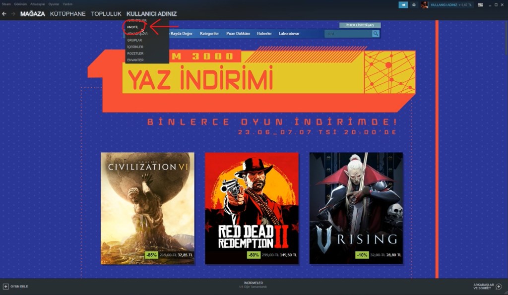 2) Üst menüden kullanıcı adınızın üstüne gelip profile tıklayınız.